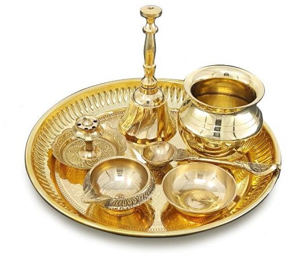 The Pooja Thali is more than just a plate; it is a meticulously arranged sacred ensemble, a microcosm of devotion ready to connect the worshipper with the divine. Crafted from gleaming brass, copper, or silver, its surface holds a symphony of spiritual essentials: a flickering diya dispelling darkness, fragrant incense rising as prayers, vibrant kumkum and auspicious rice for blessings, and fresh flowers as offerings of beauty and purity. Each element on the thali plays a vital role in creating a serene and focused atmosphere for worship, a beautiful reflection of faith passed down through generations.
