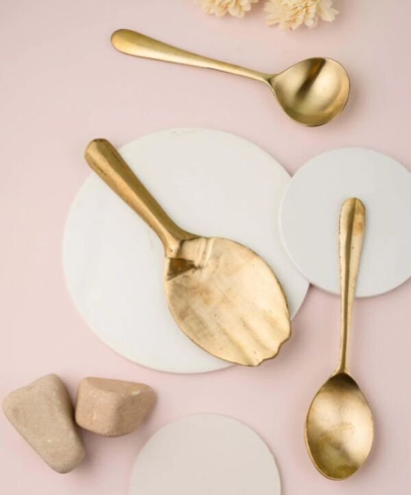 "Serve with tradition and grace. This handcrafted Kansa serving spoon set brings the beauty of ancient Indian craftsmanship and the wellness of Ayurveda to your table."