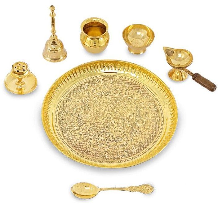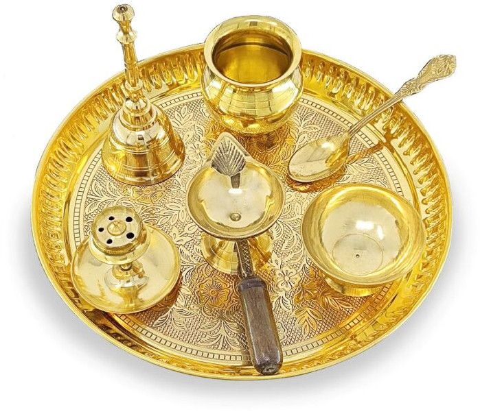 Imagine a circular canvas, carefully adorned and prepared for a profound spiritual dialogue. This is the Pooja Thali, an indispensable part of Hindu rituals. Whether for daily prayers in a quiet home temple in Agra or grand festive celebrations, it becomes a focal point of reverence. It beautifully organizes the tools of worship – a lamp's steady glow, the purifying smoke of dhoop, the vibrant hues of haldi and kumkum, and the humble grains of rice, all culminating in a harmonious expression of gratitude and spiritual aspiration.