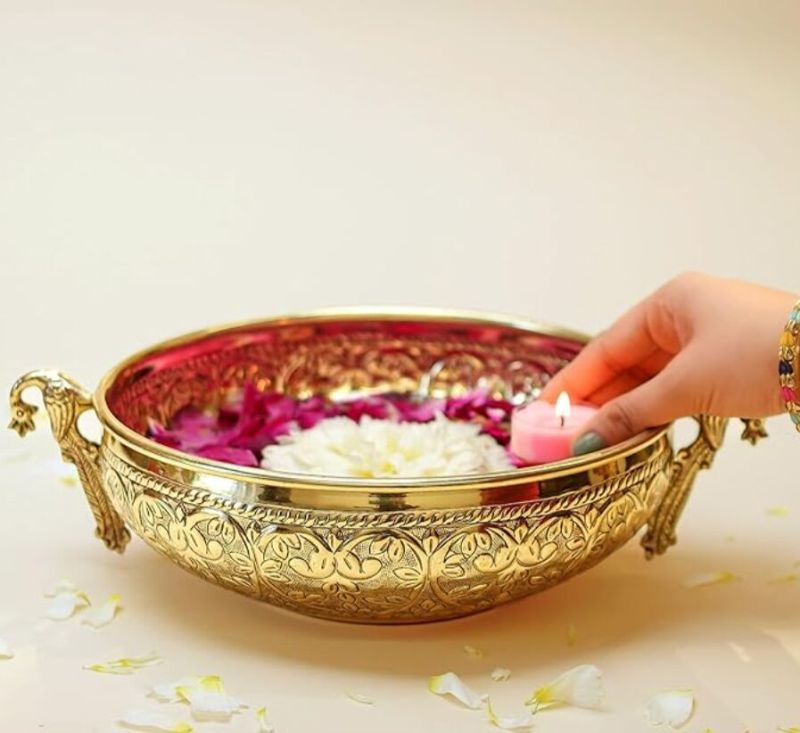 Bring elegance to any space with this beautifully crafted urli bowl—ideal for festive decoration.